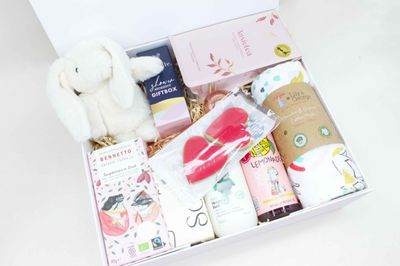 A curated practical gift for Mum & Baby. The Mum & Baby KYND Gift Box combines beautiful, useful items, along with some luxury items - helping her care for herself and her little one with ease.