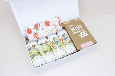 This gorgeous little gift is perfect for summer - The '4 the Love of Wine' KYND Gift Box is complete with 4 beautiful New Zealand Wine cans, best enjoyed in Huski wine Tumbler, along with a gorgeous, designed Strawberry Hill Tea towel that will help you enjoy doing the dishes :)